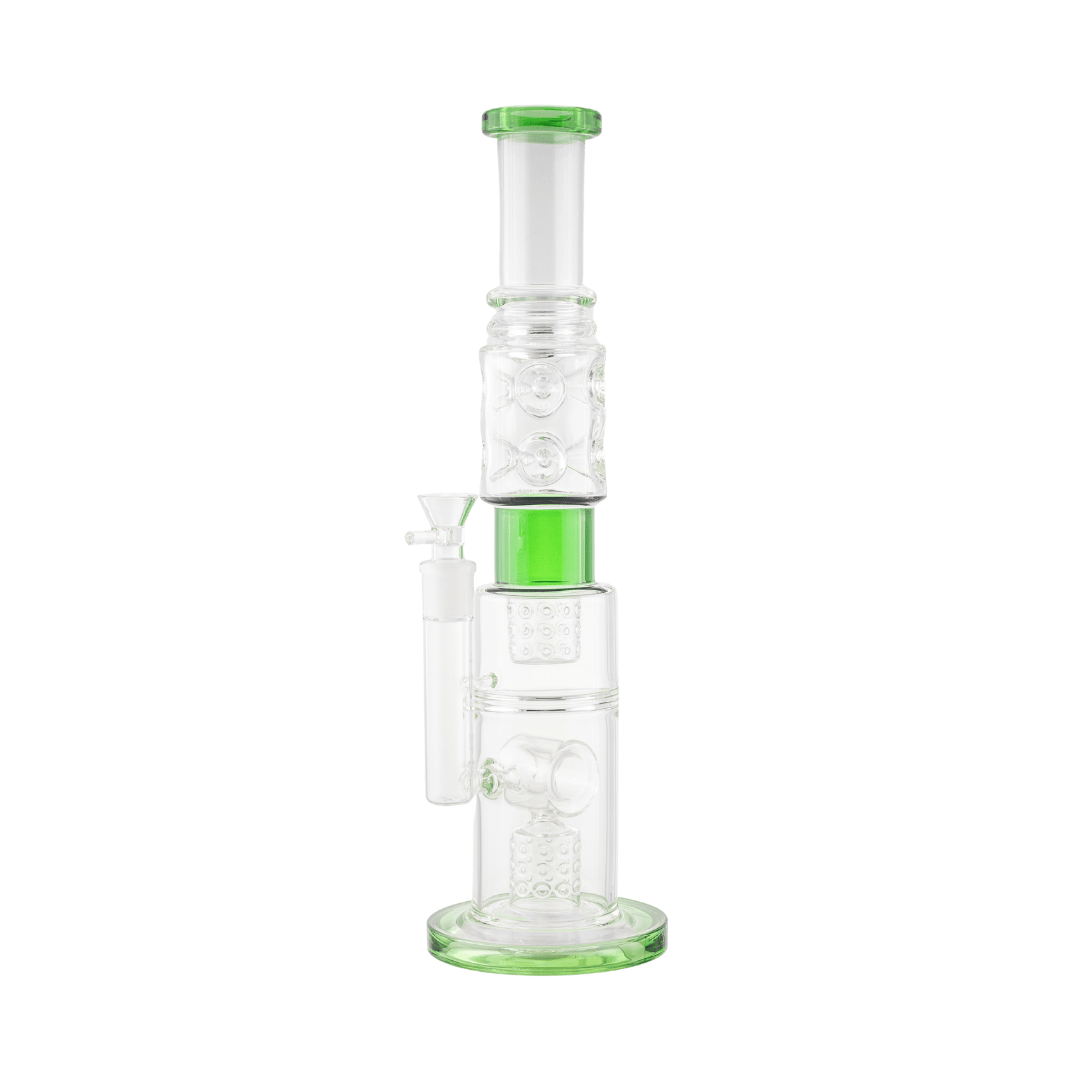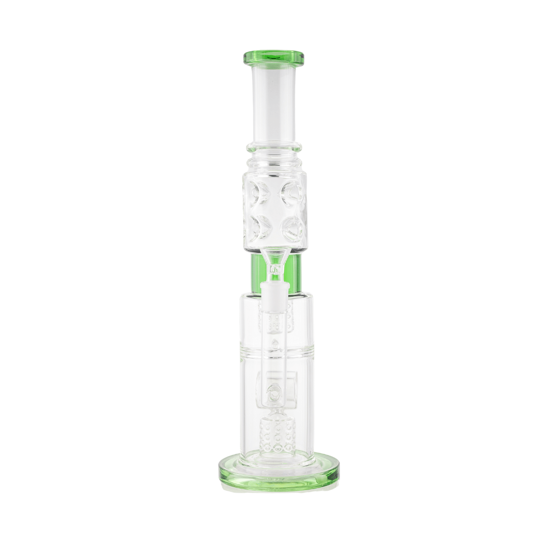Crafted from premium quality glass, this waterpipe features a dual percolator system that ensures maximum filtration and cooling for exceptionally smooth hits. The striking honeybee design adds a touch of elegance and whimsy, making this piece as visually captivating as it is functional. The double percolators work together to diffuse and filter the smoke, providing a cleaner and more enjoyable smoking experience.