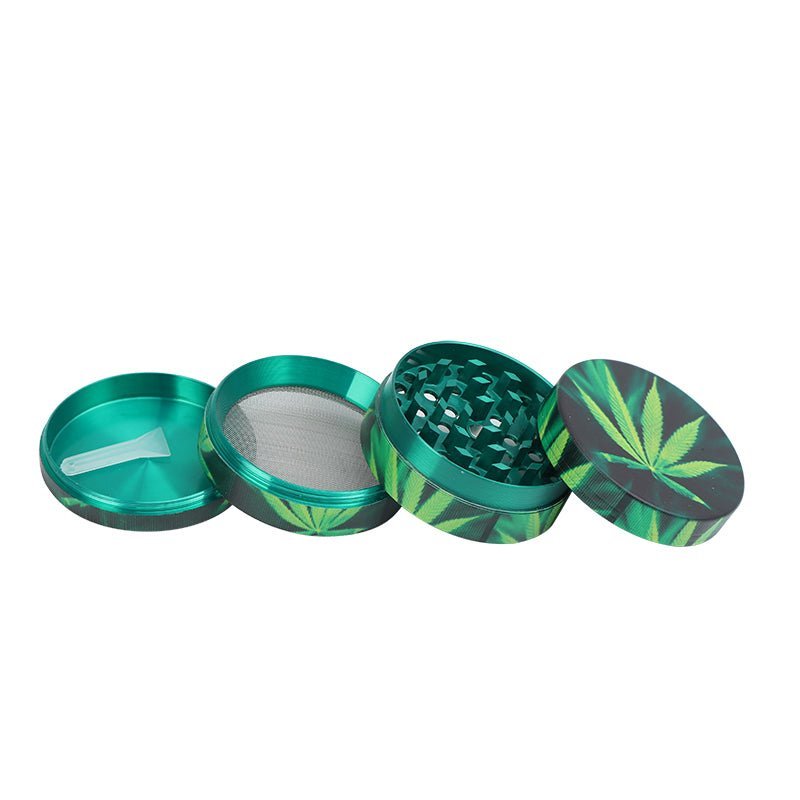The Green Leaf Solid Pattern Aluminum Grinder is a stylish and practical grinding tool designed to enhance your grinding experience. Crafted from high-quality aluminum, this grinder ensures durability and longevity, making it a reliable companion for grinding herbs or spices.