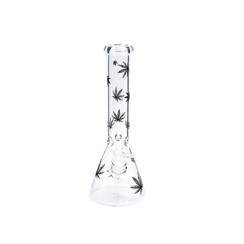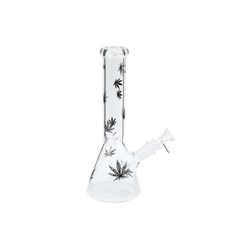 Leafy Pattern Clear Glass Waterpipe with Ice Chamber 26cm