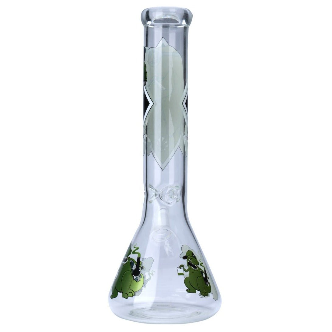 the Smoking Dinosaur Glass Beaker Shape Waterpipe is the perfect addition to any smoking collection. This 35cm waterpipe is crafted with high-quality glass and features a unique dinosaur print.